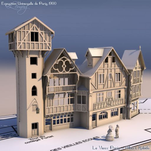 Comme je l’ai déjà signalé dans un post précédent, ces édifices du Vieux-Paris n’étaient pas uniquement un décor à la “Disneyland”, fait de carton-pâte, mais de réelles maisons, avec au rez-de-chaussée des échoppes… un ensemble destiné à recevoir pendant plusieurs mois la visite de milliers… voire de millions de visiteurs. Il fallait que cela résiste !